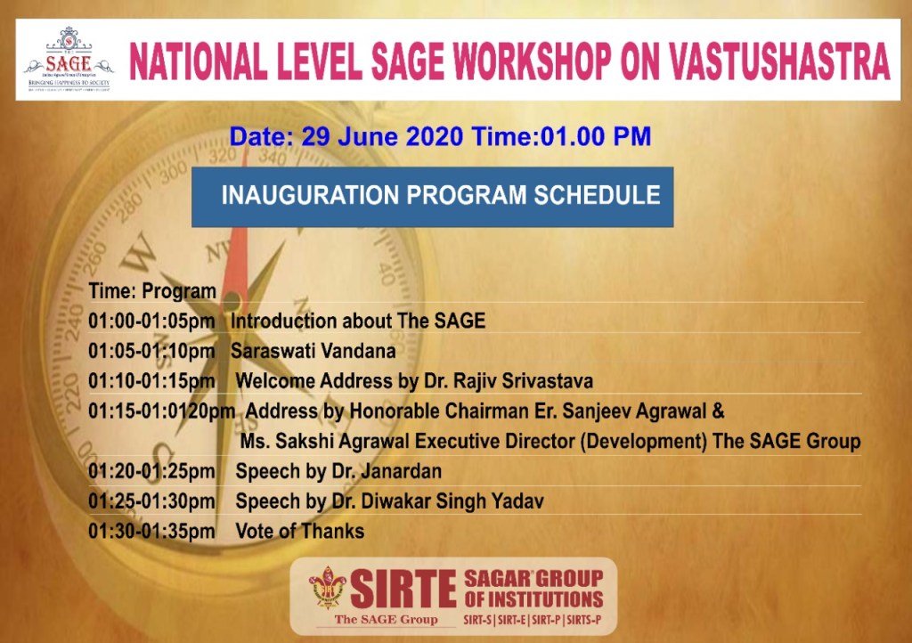 🎊🎊We are happy to announce that Department of Civil Engineering SIRTE organizing a three days workshop on a very interesting topic which is closed to everybody i.e. on vastushastra the main aim of the workshop is to connect vastushastra with civil engineering for the benefit of society.🎊🎊